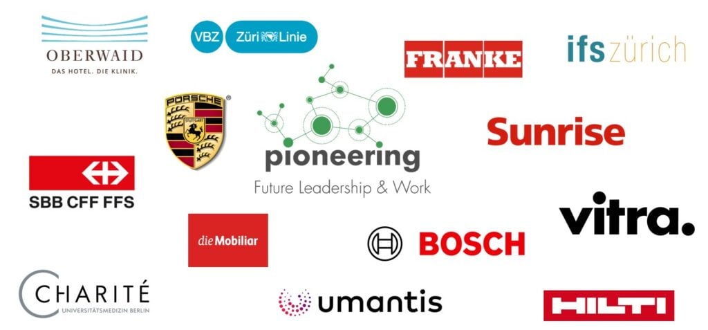 Das Konsortium besteht aus den Partnerfirmen Porsche SE, die Mobiliar, Oberwaid, Verkehrsbetriebe Zürich, Abacus umantis, Sunrise, Vitra, Bosch Bamberg, Charité und Franke. Wir freuen uns sehr, Porsche SE und Charité als neue Pioneering Unternehmen in unserem Netzwerk begrüssen zu dürfen. Mit den Unternehmen werden bilaterale Kooperationsprojekte durchgeführt, bei denen Fragestellungen rund um Leadership, Kultur, Nachhaltigkeit und New Work erörtert werden.